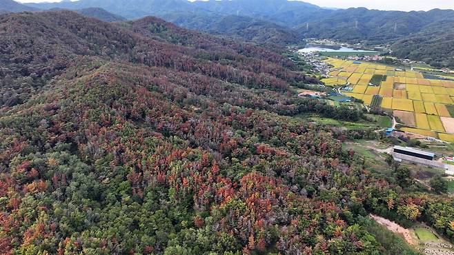 | ▲ 재선충으로 소나무들이 시뻘겋게 죽어가고 있다. |