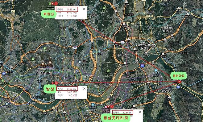 | ▲ 재선충이 심각하게 확산 중인 팔당대교에서 서울 시내가 겨우 20km 정도에 불과하다. 서울시내 소나무들이 전멸될 위기가 닥친 것이다. |