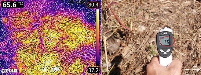 | ▲ 훈증과 숲가꾸기 등으로 나무를 잘라 빈 공간이 생기면 토양 온도가 급상승한다. |