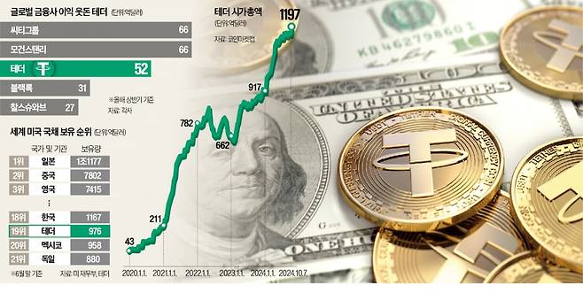 시가총액 1위 스테이블 코인 테더(USDT)를 발행하는 테더사의 미국 국채 보유량이 독일을 넘어 한국과 맞먹는 수준까지 불어나면서다.