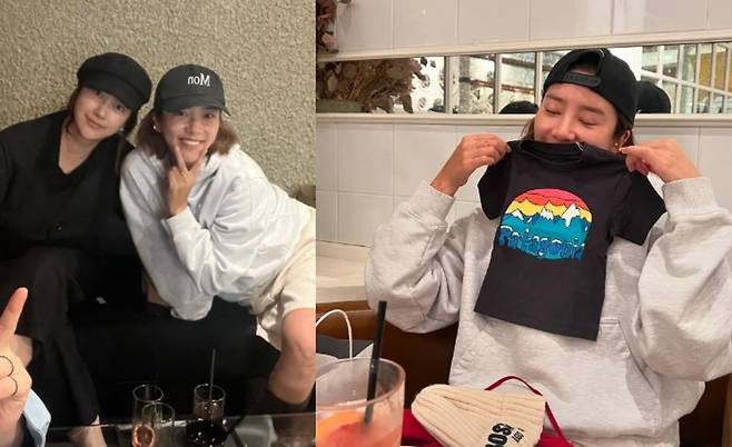 공개된 사진엔 동료 배우 손담비와 함께한 신애의 모습이 담겼다.