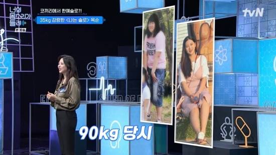 8일 방송된 tvN '너의 몸소리가 들려'에서는 김슬기가 출연해 다이어트 성공기를 전했다.