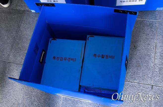 | ▲ 세금도둑잡아라, 함께하는시민행동, 투명사회를위한정보공개센터 등 활동가들이 2023년 6월 23일 오후 서울 서초구 대검찰청에서 검찰특수활동비 등에 대한 정보공개청구 자료를 수령하고 있다. |