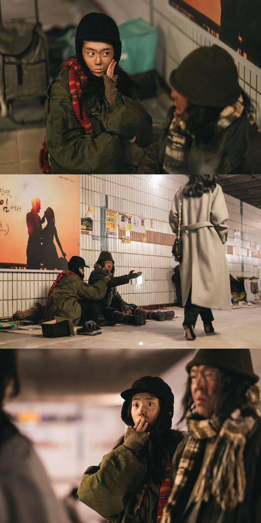 이와 함께 공개된 스틸 속 무중력과 서민서는 ‘이렇게까지 한다고?’라는 말이 떠올리듯 변화무쌍한 변장술로 시선을 강탈한다. 로맨스 스캠 사건을 일망타진하기 위해 노숙자로 위장한 뒤 잠복 수사에 나선 두 사람인 것. 한눈에 봐도 거지를 연상시키는 비주얼에서 무중력과 서민서의 험난한 강력반 형사의 길을 엿볼 수 있다. 그 와중에 서민서는 거지 분장도 뚫고 나오는 모태 청순 미모와 러블리한 매력으로 보는 이의 입가에 미소를 짓게 한다. 특히 두 사람이 누군가의 깜짝 등장에 입틀막하고 있어 무슨 상황이 펼쳐졌을지 궁금증을 고조시킨다.