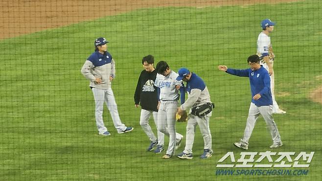 투구를 이어가기는 무리였다. 트레이너가 손으로 엑스자를 그렸고, 부축을 받으며 교체됐다. 벤치로 돌아가는 백정현의 표정은 고통으로 일그러져 있었다.