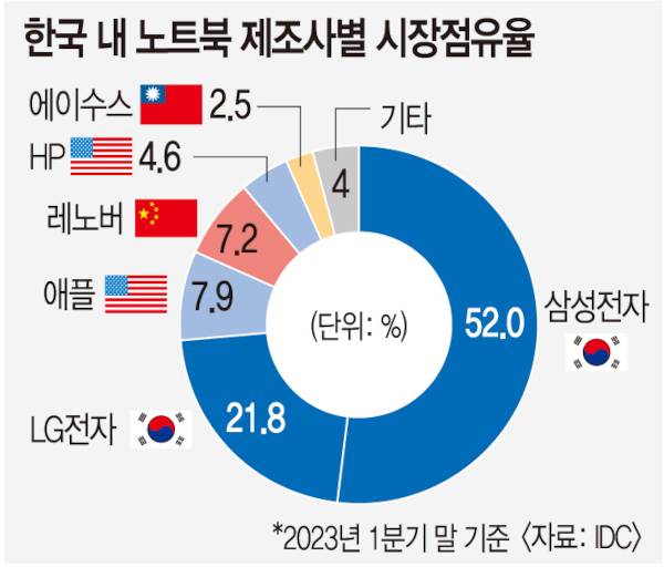 글로벌 노트북 시장과 달리 국내에서는 삼성전자와 LG전자가 제왕적 지위를 갖고 있다.
