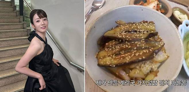 영상에서 윤보미는 아침 겸 점심으로 먹을 가지 덮밥을 만들었다.