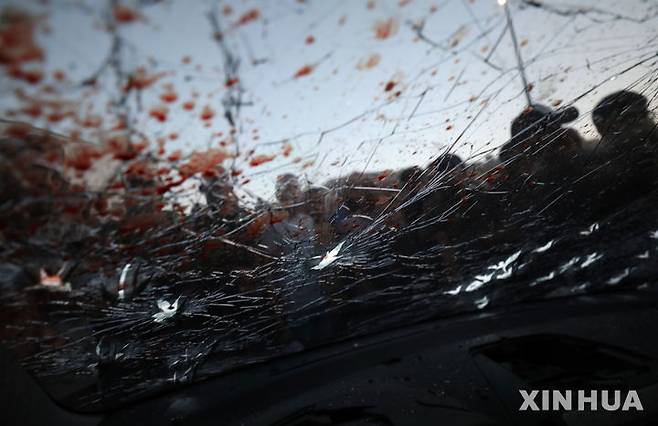 [나블루스=신화/뉴시스] 9일(현지시각) 요르단강 서안지구 나블루스에서 이스라엘군의 총격으로 사망한 팔레스타인인들이 탑승했던 차량 유리에 핏자국이 남아 있다. 팔레스타인 보건부는 사복 차림의 이스라엘군 특수부대원들이 최소 4명의 팔레스타인인을 살해했다고 발표했다. 이스라엘군은 나블루스에서 수배 중이던 5명을 사살했으며 이중엔 알아크사 순교자 대대 지휘관도 있었다고 밝혔다. 2024.10.10.