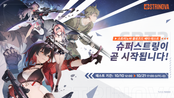 아이드림스카이는 서브컬처 TPS '스트리노바'의 두 번째 CBT '슈퍼스트링'을 공식 서버와 스팀에 동시 오픈한다. 테스트는 한국시간 기준 10일 오후 9시부터 22일 오전 2시까지 열린다.