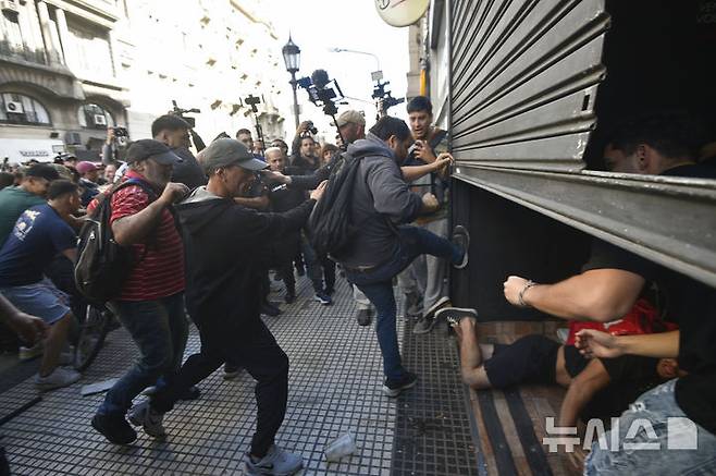 [부에노스아이레스=AP/뉴시스] 9일(현지시각) 아르헨티나 부에노스아이레스의 국회의사당 밖에서 반정부 시위대와 정부 지지자들이 충돌하고 있다. 아르헨티나는 공립대학 학비가 무료로 야당은 물가 상승을 이유로 재정 지원 증액 법안을 통과시켰으나 밀레이 대통령은 이를 거부했다. 2024.10.10.