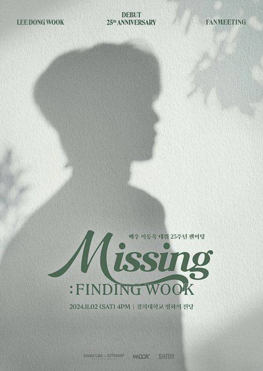 한편, 이동욱 데뷔 25주년 팬미팅 ‘Missing : FINDING WOOK’은 오는 11월 2일(토) 오후 4시 경희대학교 평화의 전당에서 진행되며, 팬클럽 선예매는 10일 오후 8시부터 오후 11시 59분(KST)까지, 일반 예매는 오는 11일 오후 8시에 온라인 예매처를 통해 단독 오픈 된다. /elnino8919@osen.co.kr