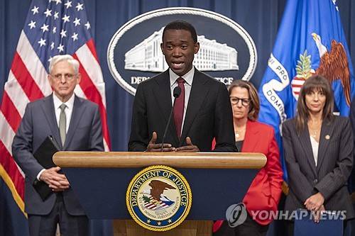 Deputy Secretary of the Treasury Wally Adeyemo, standing with, from left, Attorney General Merrick Garland, Deputy Attorney General Lisa Monaco and Deputy Assistant Attorney General Nicole Argentieri, speaks during a news conference to announce that TD Bank will pay an approximately $3 billion settlement after authorities say the financial institution's lax practices allowed for significant money laundering, at the Department of Justice, Thursday, Oct. 10, 2024, in Washington. (AP Photo/Mark Schiefelbein)