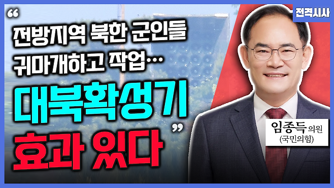 ▶ 임종득 : 대북 방송을 듣지 못하게 하는 거죠. 그리고 우리 방송의 K-POP이 나가면 저 북쪽에 있는 경계 인원들이 있을 거 아닙니까? 그 인원들이 K-POP의 리듬에 맞춰서 춤을 추는 모습이 식별됩니다. 그건 충분히 효과를 보고 있다고 보고 그것이 아픈 거죠. 그래서 저열하게 이제 오물풍선을 날리고 또 뭐 아주 이상한 소리를 내는 대남 방송들을 해서 우리 접경지역에 있는 주민들을 괴롭히는 겁니다. 그래서 그걸 못하게 하려고 지금 그 일을 하고 있는 것이고 그걸 받아가지고 야당에서는 또 그거 하지 말라고 지금 우리 군에 요구하고 있는 그런 모습입니다.