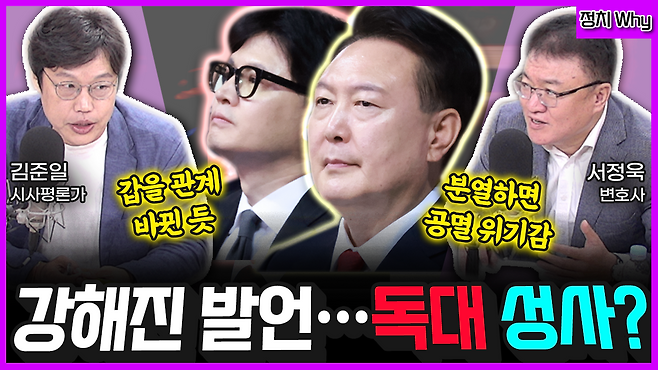 ▶ 김준일 : 그러니까 그전에 일련의 과정들을 보면 독대 요청했는데 안 되고 재독대 요청했는데 묵묵부답이고 사실상 재재독대 뭐 이 정도 되는 것 같아요. 그러면 뭐가 변했느냐. 그때는 한동훈 대표가 본인을 중재자 역할을 굉장히 강조를 하면서 이를테면 의정 갈등에 여야의정협의체 본인이 해서 룸을 열어줘라, 공간을 열어줘라 이런 식의 요청이었는데 윤석열 대통령이 거의 매몰차게 감정이 상할 정도로 이렇게 지금까지 반응을 안 했잖아요. 저는 그냥 쉽게 얘기하면 갑을 관계가 바뀌었거나 좀 대등해졌다 이렇게 봅니다. 그때는 한동훈 대표가 매달리는 상황이었잖아요. 그런데 더 이상 이제 저는 그 말이 의미심장했는데 친한계 의원들이 모여서 했다는 얘기가 당은 당의 일을 하고 정부는 정부의 일을 하면 된다라는 거예요. 그러면 당의 일을 한다라는 게 뭡니까. 예를 들면 김대남 전 선임행정관 당무감사하고 윤리위 하고 소집하고 이런 것도 하고 선거도 치르겠다라는 거 아니에요, 본인 주도로. 그래서 지금 결국은 명태균 폭로 계속 나오고 있고 김건희 여사 지금 리스크 있고 그리고 특검 말씀하셨는데 지금 다음에 특검 어떻게 될지 모른다라는 이런 불안감이 엄습하는 상황에서는 결국은 대통령도 아쉬운 게 많이 생겼다 뭐 이렇게 볼 수밖에 없는 거죠.