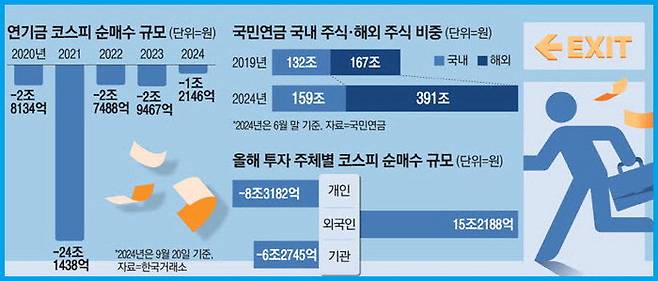국내증시에서 대표적 기관투자자인 연기금의 시장대응이 부정적이라 걱정이다. 연기금이 시장 버팀목 역할을 하지 못하고 오히려 5년째 연속 순매도로 일관하고 있는 것이다. 올해는 특히 연 초 정부가 밸류업 기조를 강화하며 코리아 디스카운트(KOREA Discount)해소를 정책적으로 추진하다고 공언했음에도 시장에서 순매도 움직임이라 수급 상 부정적이다. 특히 시가총액 1위의 위치에 있는 삼성전자를 작년에 이어 올해도 1조원 이상 매도하고 있다. 문제는 삼성전자와 현대차와 같은 반도체, 자동차 섹터(Sector)의 상승과 하락 움직임이 시장 전체의 분위기를 좌우한다는 데 있다.