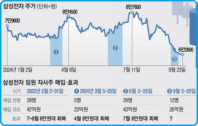 한편 상장사 임원인 경영진의 자사주 매입은 해당 주식이 시장에서 저평가 상태임을 의미한다. 임원의 자사주 매입은 기업의 공시 가운데 ‘임원. 주요주주특정증권 소유현황 보고서’를 통해 확인할 수 있다. 삼성전자의 경우 한종희 대표이사 부회장이 73,900원에 1만주의 자사주를, 박학규 사장이 66,850원에 6000주를, 노태문 사장이 69,500원에 자사주를 취득했다는 공시가 있었다. 임원들의 매수한 단가를 고려하고, 현재의 주가가 PBR 1.07배 수준이라는 것을 고려할 때 지금부터는 분할매수 관점에서의 접근이 유효하지 않을까 조심스럽게 제시해 본다.
