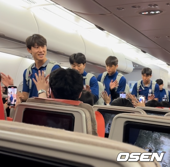 ‘전세기 안에서 악수와 사인까지 특급 팬서비스’ 태극전사들 기분 좋은 귀국길 [오!쎈 현장]