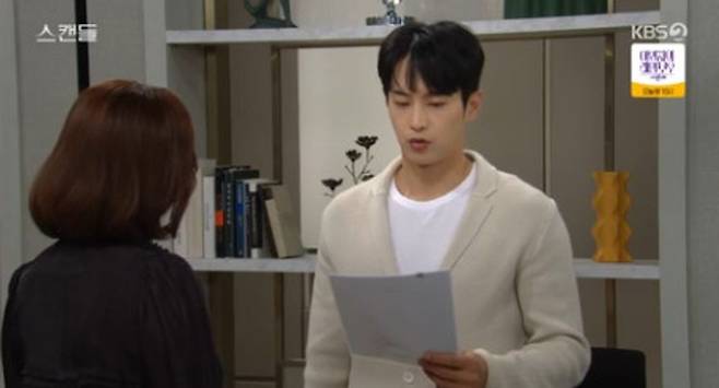 11일 KBS2TV 일일드라마 '스캔들'에선 정인(한채영 분)이 우진(최웅 분)에게 노출 연기를 강요하는 모습이 그려졌다.