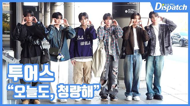 투어스(TWS)가 특유의 청량함으로 공항을 밝게 비췄다.