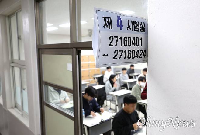 | ▲ 2023년 11월 16일 2024 대학수학능력시험을 치르는 한 고사장 |