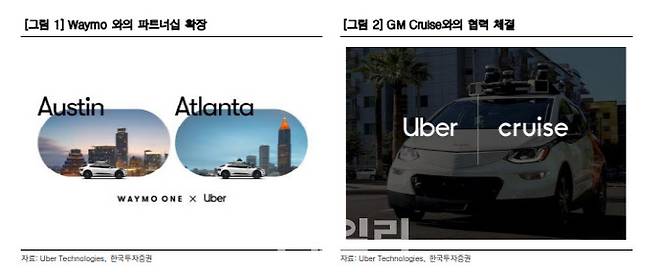 우버와 Waymo의 AV 파트너십이 2025년 초 애틀랜타와 오스틴으로 확장된다. 이번 확장은 Waymo One이 아닌 우버 앱을 통해 독점적으로 이용할 수 있다. 이 연구원은 “서비스 지역의 확장 외에 우버가 앱을 독점적으로 공급한다는 점이 이번 발표의 핵심 요소라고 판단한다”면서 “이번 계약을 통해 우버가 유리한 계약 조건을 점한 것을 확인했다”고 전했다.