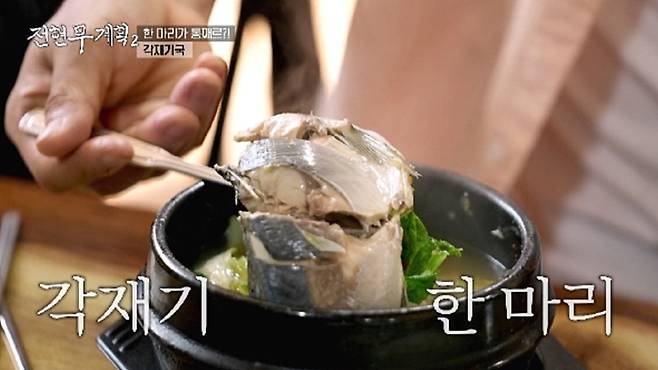 "제주의 찐 맛집을 깔끔하게 정리해드리겠다"며 "첫 끼는 뭍에선 먹을 수 없는 제주 향토 음식 각재기국을 먹을 것"이라고 말한 전현무는 첫 맛집에 도착해 각재기가 통째로 들어간 맑은 국을 마주했다. 하지만 곧장, "아! 나 생선이랑 눈 마주쳤어!"라며 기겁했다. 마음을 다잡고 국물과 생선 한 움큼을 먹은 전현무는 맛을 음미하더니 "비주얼과 다른, 반전 지수 1등!"이라고 말했다. 여기에 큼지막한 멜튀김도 먹은 뒤, "미쳤다! 이집 요리 너무 잘해"라고 감탄했다.