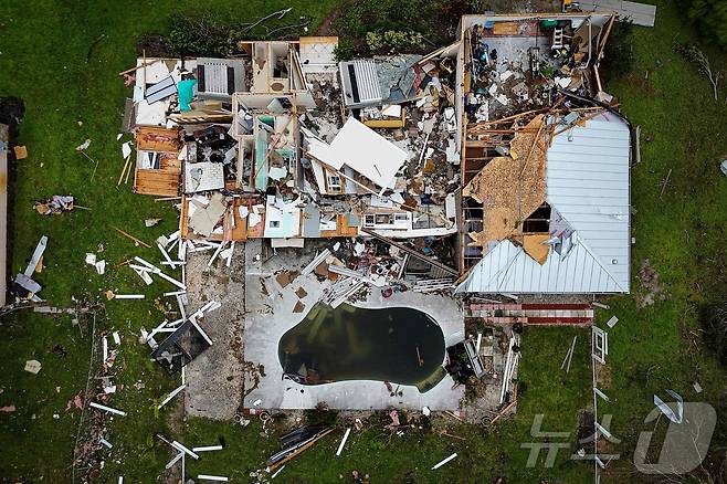 (포트 세인트 루시에 AFP=뉴스1) 우동명 기자 = 11일 (현지시간) 허리케인 밀턴이 휩쓸고 간 플로리다주 포트 세인트 루시에에서 쑥대밭이 된 주택들의 모습이 보인다. 2024.10.13