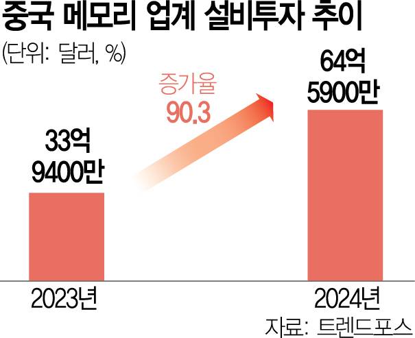 중국 반도체 업체가 인공지능(AI) 시대 필수 메모리로 꼽히는 고대역폭메모리(HBM) 양산에 박차를 가하고 있다. 구형(레거시) 메모리는 물론 최첨단 D램 제품군인 HBM 생산까지 도전하면서 업계 1·2위인 삼성전자와 SK하이닉스를 바짝 추격하고 있다.