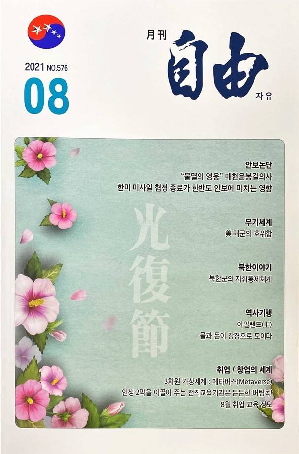 | ▲ <자유>는 성우안보전략연구원에서 발간하는 월간지로, 국방부가 일선 부대에 정기적으로 배부하는 ‘안보간행물’ 5종 중 하나다. |