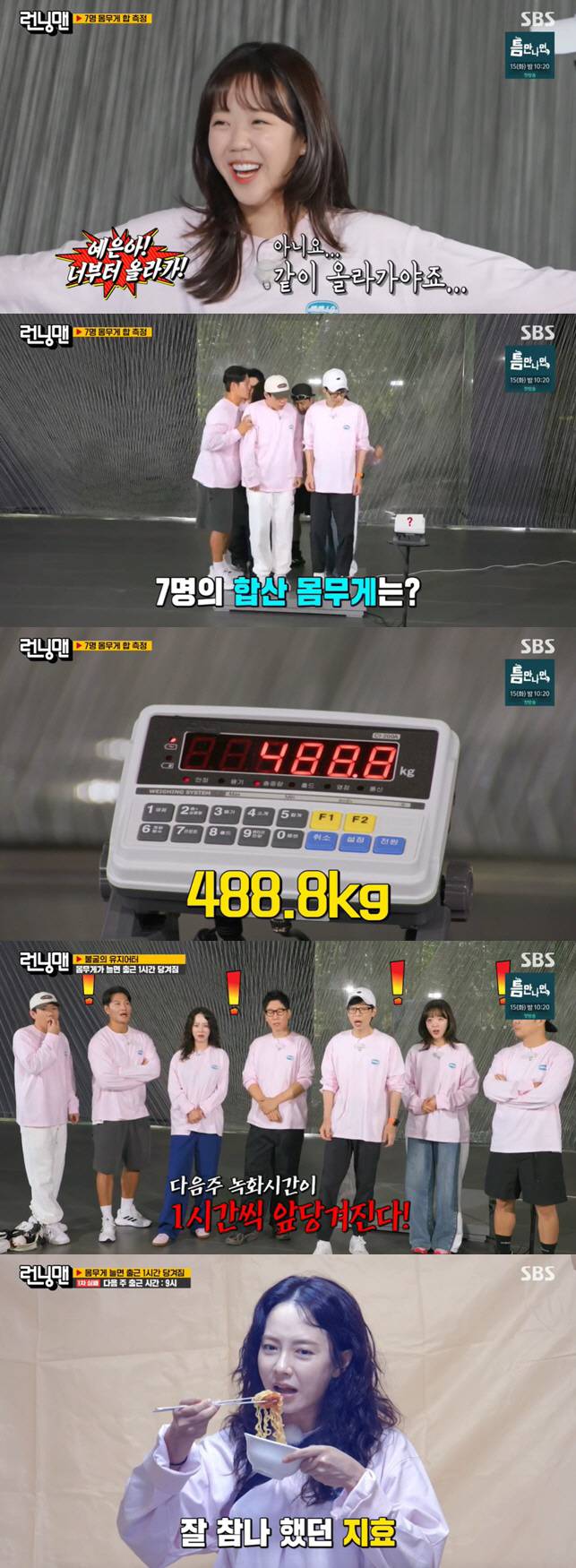 13일 방송된 SBS '런닝맨'에서는 멤버들이 운명공동체가 되어 다 함께 몸무게를 사수해야만 하는 '불굴의 유지어터' 레이스가 펼쳐졌다.