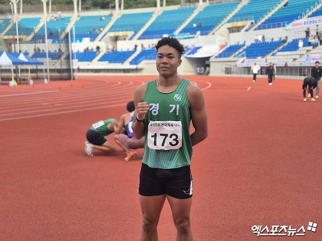 (엑스포츠뉴스 김해, 김지수 기자) 한국 남자 육상 단거리의 간판 유망주 나마디 조엘진(18·김포과학기술고)이 제105회 전국체육대회 고등부 100m 대회 신기록을 수립했다. 내년 성인 무대 데뷔를 앞두고 한층 더 자신감을 가질 수 있게 됐다.