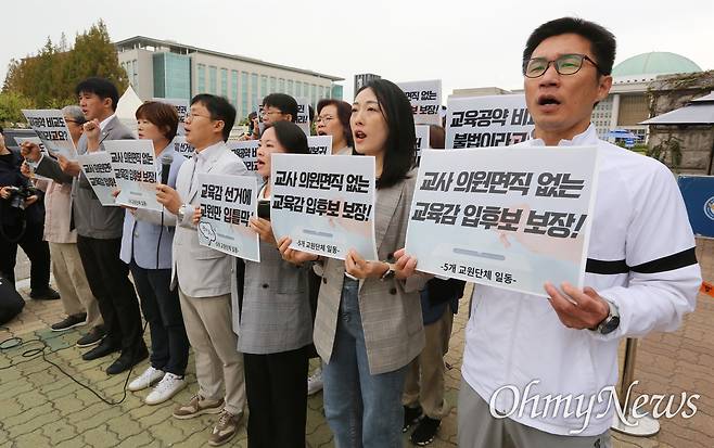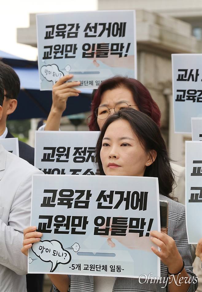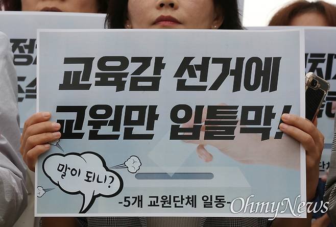 [오마이포토] '교육감 선거에 교원만 입틀막!'