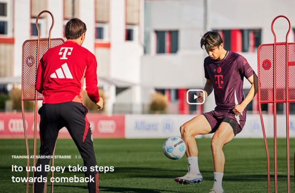 이토의 복귀가 임박했다는 소식이 전해졌다. 뮌헨은 9일(이하 한국시간) 구단 홈페이지를 통해 "뮌헨 선수 두 명이 복귀를 위해 한 걸음 더 나아갔다. 이토 히로키는 중족골 골절 부상을 당한 뒤, 월요일 아침 다시 공을 활용한 훈련을 소화했다. 사샤 보이는 반월판 파열 부상 이후 처음으로 훈련장을 몇 바퀴 돌았다"고 발표했다.