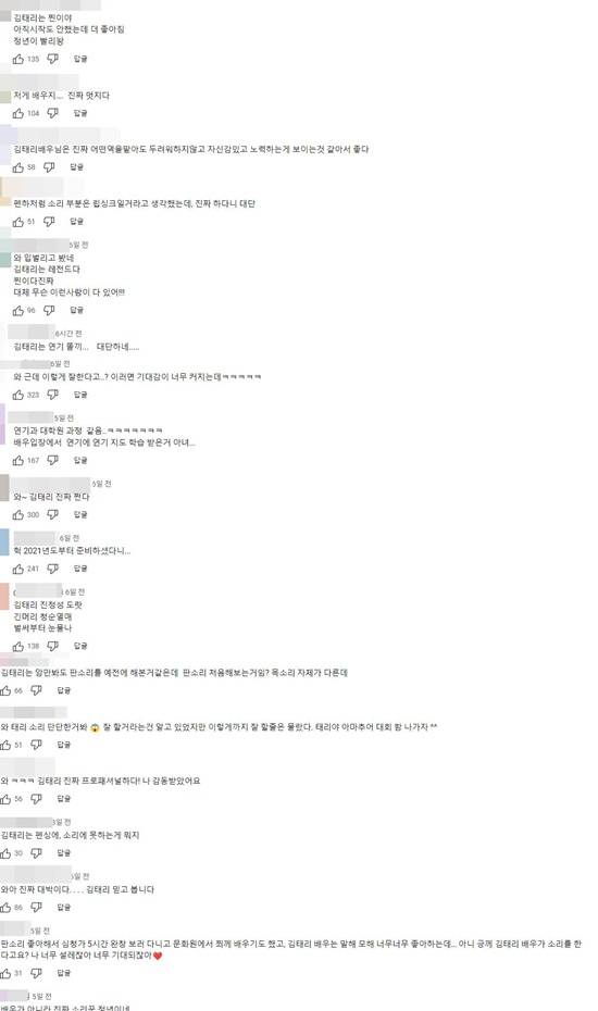 이후 '리틀포레스트', '외계+인', '미스터 션샤인', '스물다섯 스물하나', '악귀' 등에서 활발하게 활동하게 됐다. '정년이'를 통해 지금까지 해온 작품과는 완전히 다른 연기 변신을 한 김태리.