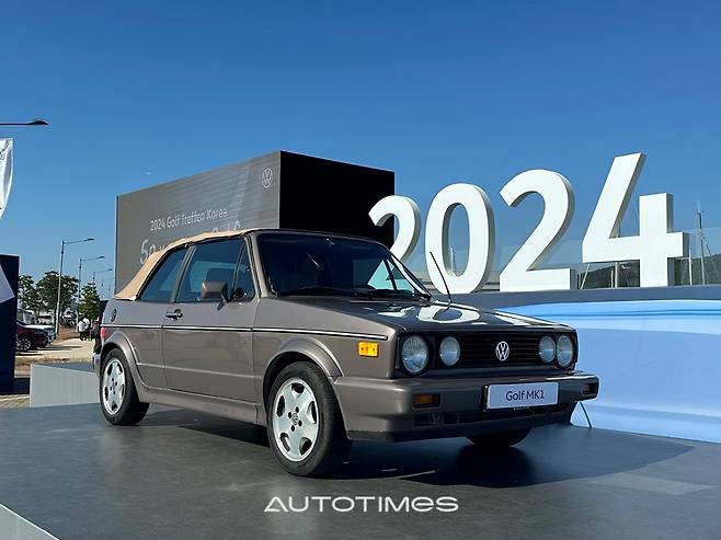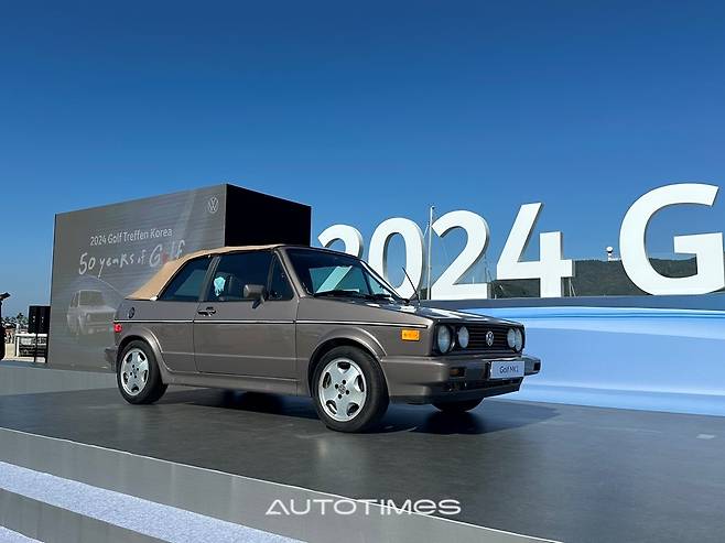 폭스바겐코리아가 12일 인천 영종도 왕산마리나에서 개최한 '2024 골프 트레펜 코리아' 현장에 1세대(MK1) 골프 카브리올레를 전시했다.