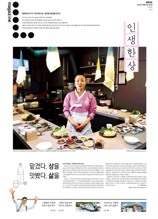 서울 도봉구의 한식 요릿집 ‘즐거운 술상’을 운영하는 김미령 셰프(49)는 요즘 눈코 뜰 새 없이 바쁜 화제의 인물이다. 지난 8일 최종회를 공개한 넷플릭스의 요리 서바이벌 <흑백요리사>에 ‘이모카세 1호’로 출연한 그는 대한민국 요리계의 스타 셰프(백수저)와 재야의 고수(흑수저) 100명이 벌인 ‘요리 계급전쟁’에서 한식 한 상의 맛깔난 손맛을 보여주며 최종 6위를 차지했다.