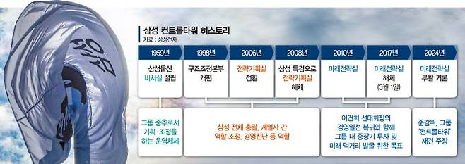 15일 삼성 준법감시위원회가 그룹 컨트롤타워 부활을 위기 타개책으로 제시한 건 신속한 소통 필요성 때문이다. '항공모함'에 비견되는 거대조직을 한 몸처럼 움직일 수 있는 '함장' 역할이 필요하다는 생각에서다.