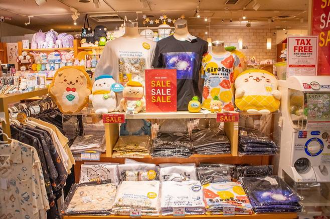 곰돌이 침대부터 딸기 모양 집 등 얼른 집에 갖고 가고 싶은 것들이 천지다. 반드시 사야할 건 아무래도 산리오와 콜라보한 시로탄 인형 아닐까. 귀여움에 귀여움이 더해지니 왕 귀엽다.
