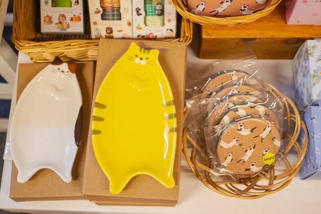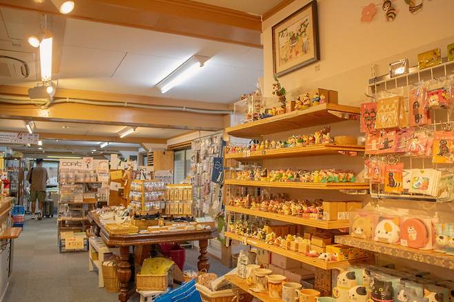 입구부터 동서남북 어디로 고개를 돌려봐도 고양이, 고양이, 고양이! 고양이가 그려진 제품이 빼곡한 일명 고양이 소품숍이다(가게 안쪽으로 들어가면 일반 미술용품과 문구류도 판매하고 있다).