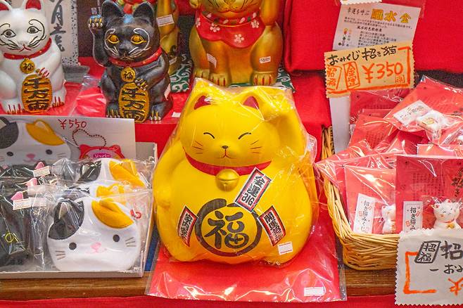 유아츠에서 도보 2분이면 가는 일본 전통 공예품 & 소품숍이다. 유아츠에서 요즘 트렌드의 고양이 일러스트·캐릭터 소품을 만났다면, 화월당 본점(花月堂本店)에서는 고전적인 고양이 소품을 만날 수 있다. 바로 마네키네코(일명 복 고양이, 앞발로 사람을 부르는 형태를 한 고양이 장식물. 길조를 부르는 물건으로 알려져 있다.)같은 것을 말이다.