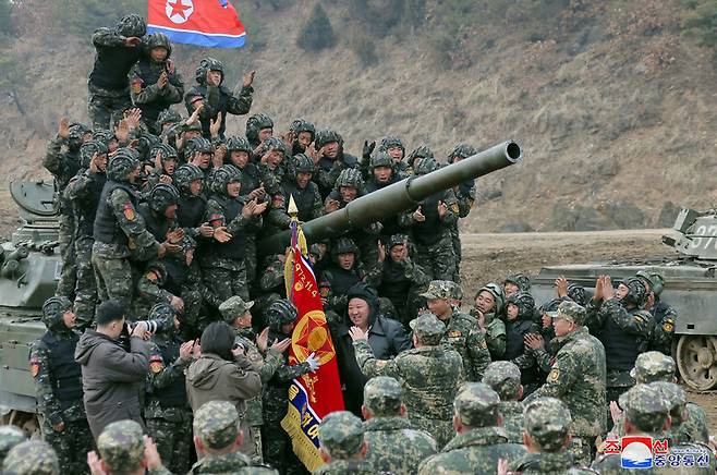 [북한 김정은, 탱크병 대항훈련경기 지도 (평양 조선중앙통신=연합뉴스)]