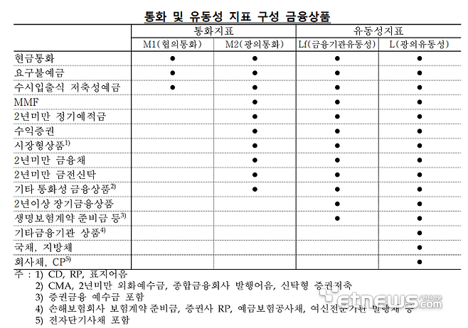 금융기관유동성(Lf)은 5517조1000억원으로 전월 대비 0.1%로 감소 전환했고 광의유동성(L)은 6970조원으로 큰 변동이 없었다.