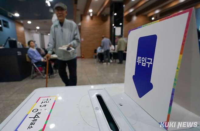 재보궐선거 본투표 실시…지팡이 짚고 투표 [쿠키포토]