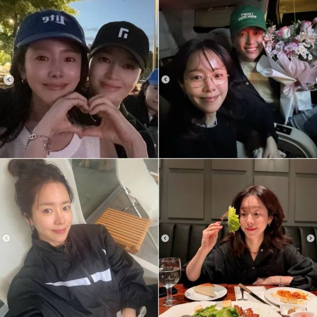 또 다른 사진에는 배우 김혜수가 있었다. 한지민과 김혜수는 서로 애정하는 선후배 사이로 잘 알려져 있다. 밤 산책에 나선 듯한 이들은 다정하게 인증 사진을 남겼다. 김혜수는 한지민을 뒤에서 안으면서 애정을 드러냈다. 나란히 모자를 쓴 모습도 아름다운 두 사람이었다.