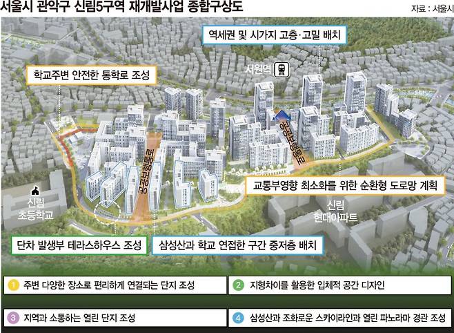 서울시는 관악구 신림5구역(신림동 412번지 일대) 재개발사업 후보지의 신속통합기획을 확정했다고 16일 밝혔다.