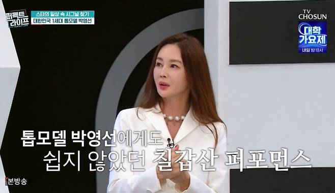 고도일 전문의는 과거 박영선 위치에 대해 "한혜진, 장윤주 씨가 요즘 탑 아니냐. 그보다 하나 더 위라고 생각하면 된다. 원톱이다. 비교할 사람이 없었다"라고 했고, 현영은 "우리나라 모델계 어나덜 레벨"이라고 밝혔다.