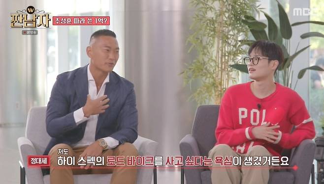 정대세는 1,600만 원짜리 자전거를 꺼냈다. 소금이들은 "중고차보다 비싼데?"라며 놀랐다. 정대세는 "성훈이 형이 자전거를 사서 SNS에 올렸다. 저도 하이 스펙의 로드 바이크를 사고 싶었다. 돌발적으로 따라 사고 싶단 욕심이 생겼다. 이건 일본용 자전거고, 한국엔 추성훈 형한테 중고로 산 자전거가 또 있다. 성훈이 형이 1,300만 원 정도에 샀고, 전 반값에 샀다"라고 밝혔다. 이에 장도연은 "성훈이 형은 원래 천만 원에 샀다"라고 놀려 웃음을 안겼다.