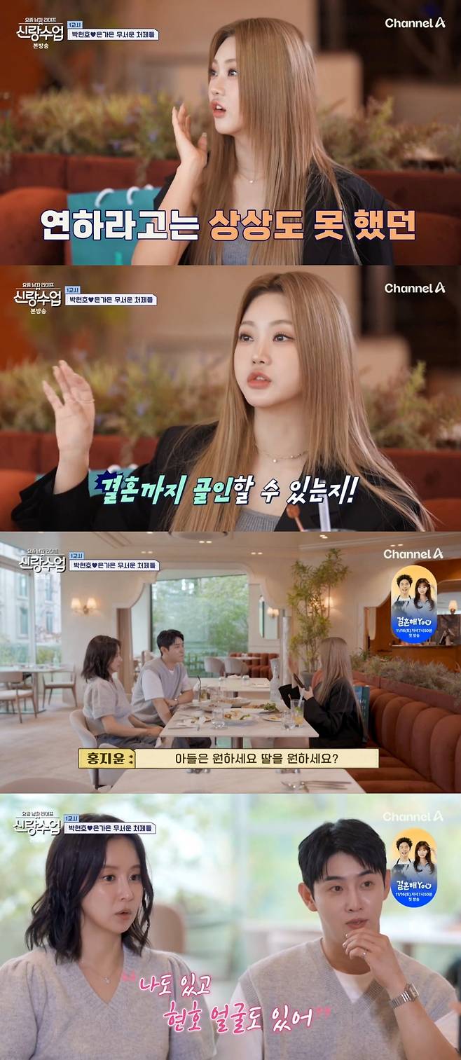 16일 방송된 채널A '요즘 남자 라이프 - 신랑수업'(이하 '신랑수업')에는 공개 열애 중인 은가은, 박현호가 홍지윤을 만나는 장면이 전파를 탔다.