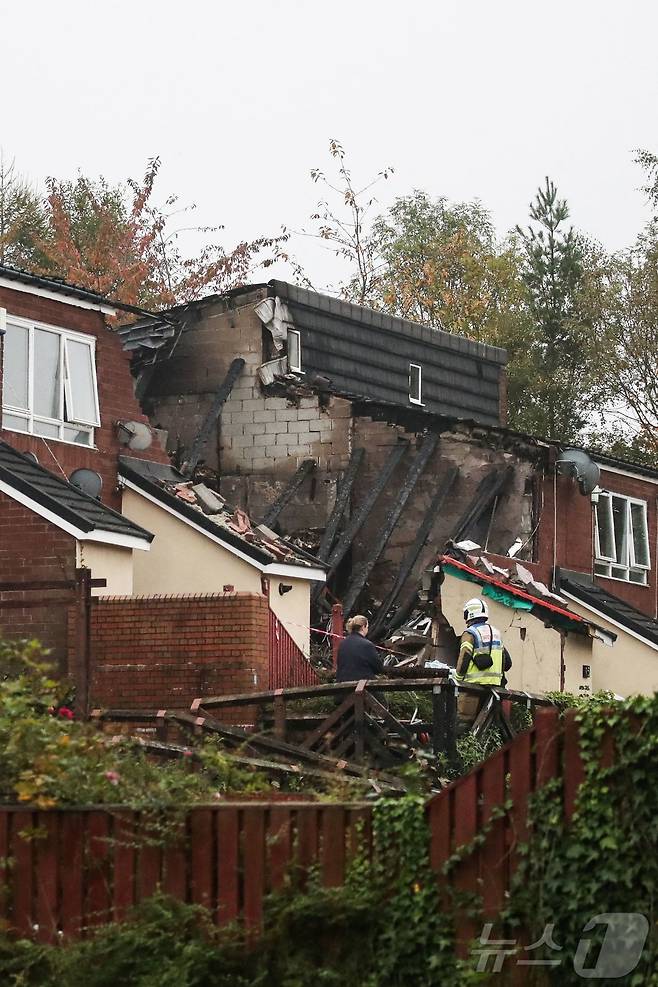 (벤웰 AFP=뉴스1) 우동명 기자 = 16일(현지시간) 영국 뉴캐슬 벤웰의 주택가에서 폭발 사고가 발생한 현장의 모습이 보이고 있다. 2024.10.17