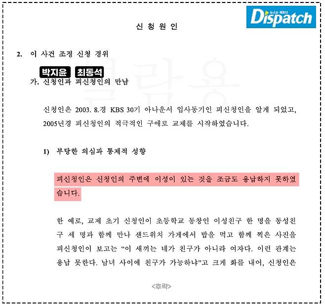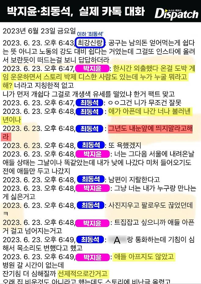 ‘디스패치’는 최동석과 박지윤을 각각 2번 이상 만났다. 수십 차례 통화, 수백 차례 문자를 나눴다. 정리가 불가능했다. 서로의 입장차가 너무 컸다.